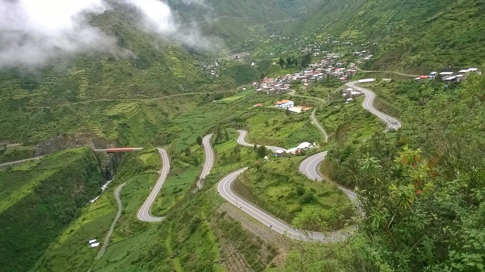 A estrada serpenteava a montanha e a cada lance de curvas de 180º a vista do local ficava mais espetacular. Subi 5km bem inclinados e cheguei numa vila chamada Huayllalloc, onde um morador disse que faltavam "apenas" 16. Fiquei feliz naquele instante, mas como já estava "vacinado" em relação as informações dadas pelos nativos resolvi olhar o meu planejamento e restavam 20 km até o topo. Droga!